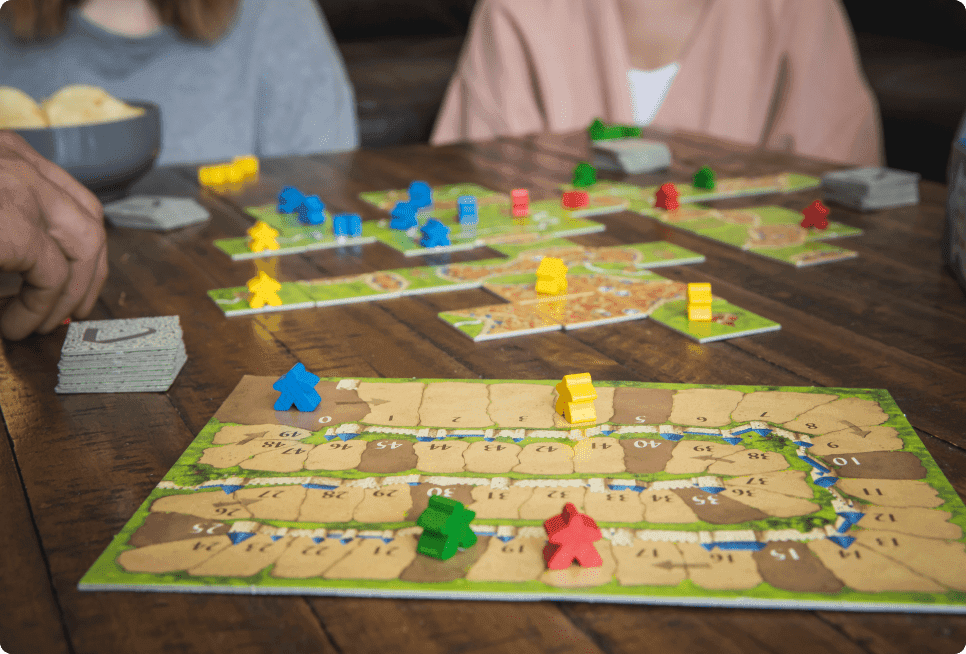 With its simple yet rich game mechanics and eighty-four tiles that can be configured into numerous combinations, Carcassonne appeals to beginners and veteran gamers alike.